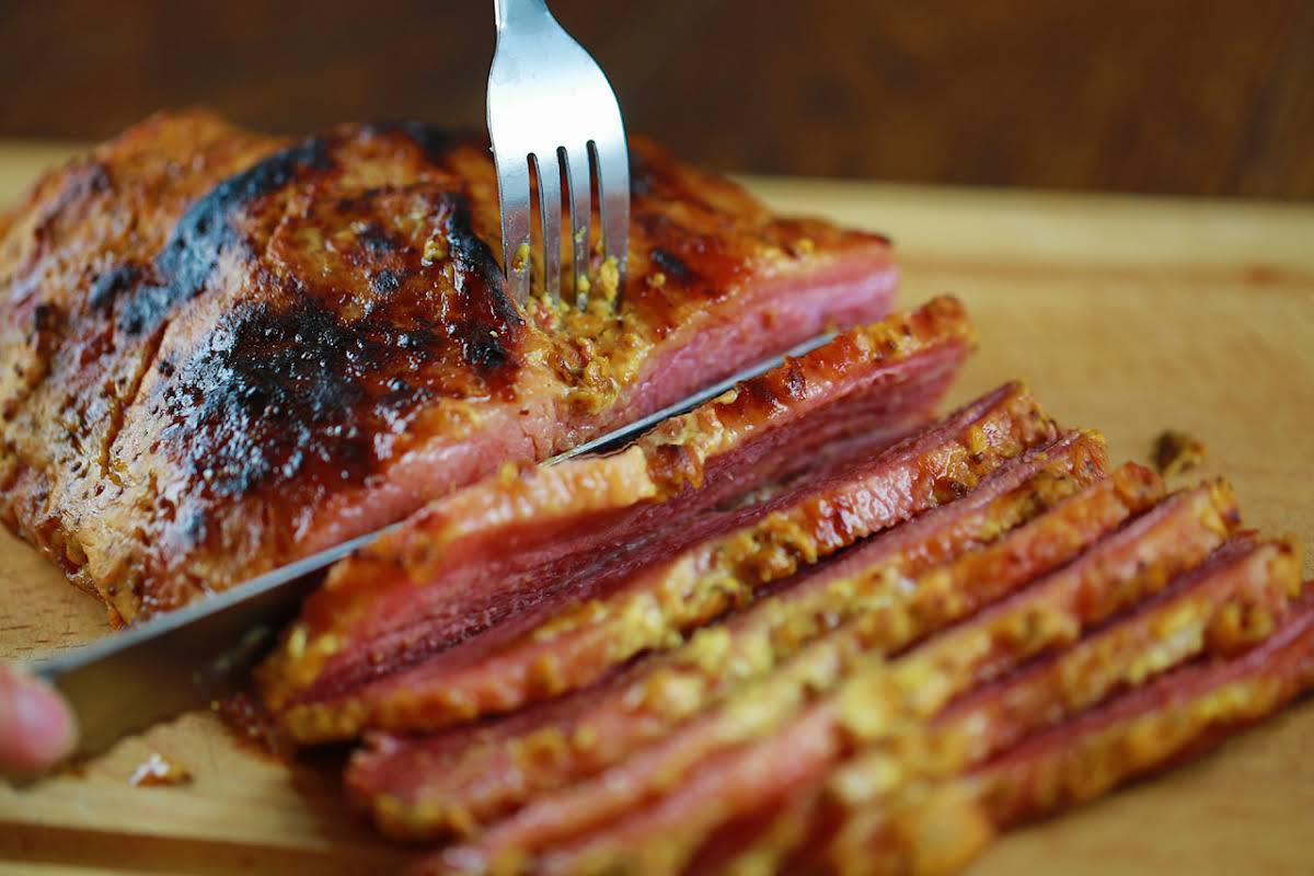 We like baking corned beef in a 350° oven. Allow the top of the brisket to become bubbly and golden brown. Place corned beef in a baking dish and add guinness to the pan. Cover and continue baking until fork tender. Add enough water to touch top of rack.