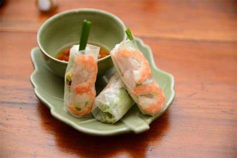 Vietnamese fresh spring rolls with prawns, steamed fish